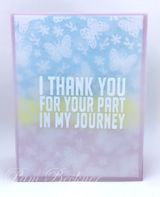 The background was created with an embossing folder and distress inks. I used vellum on the top and heat embossed the sentiment. This lovely sentiment is from Unity Stamps. On the first version of this card, I added a pretty bow at the top. I just didn't like it. When I removed the bow, there was a spot where the adhesive held the bow. I tried to salvage it to no avail, had to start over. It took at least 7 more tries to get one that I could use. I was about out of vellum and was going to use card stock, but "sheer" determination kicked in and yes, that is a pun, 😊 I finally got one that would work.